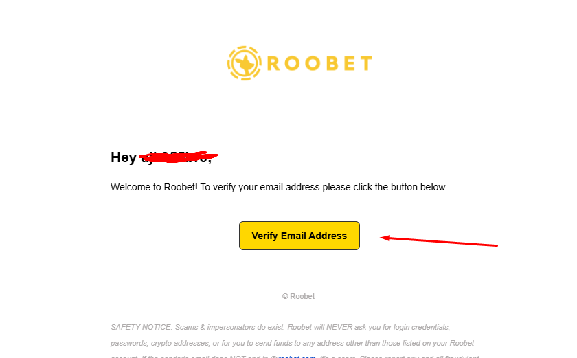 After doing everything here, Roobet will send you a verification email. Open it and verify your email address.