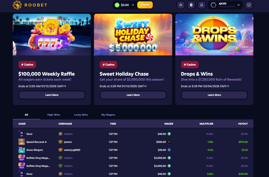 Roobet may not be the right fit if you’re only looking for a quick no-deposit bonus or guaranteed profit. Rewards here are earned through activity, not handed out upfront.